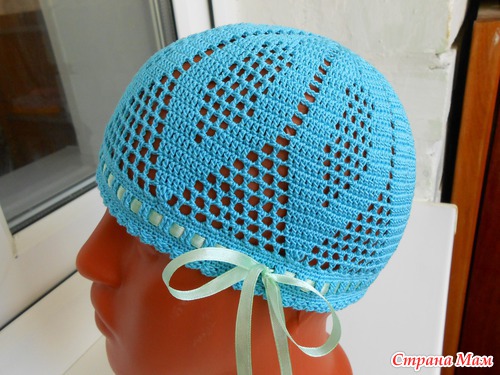 Ну и за летом вдогонку шапочка с бабочкой, пряжа "Daphne" от Madam Tricote (50г / 282м) хлопок, крючок 1,3.