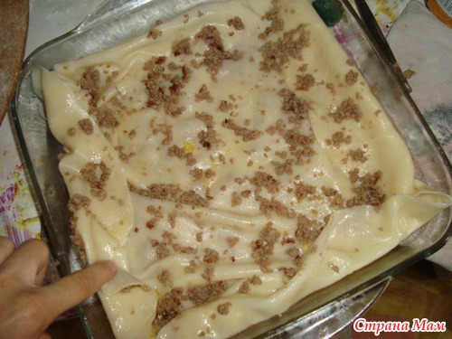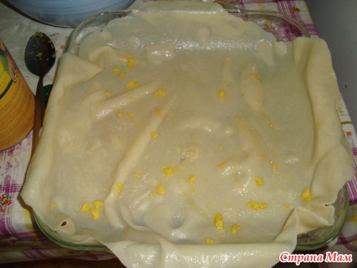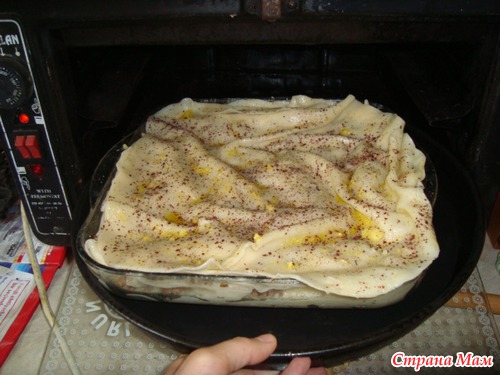 и так друг на друга собираем слои. мясо+ тесто. и между солями масло немного. и соль конечно не забыть!