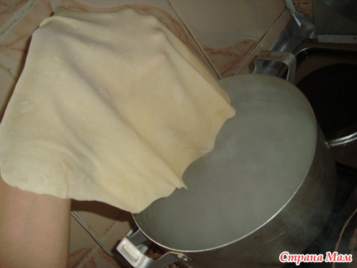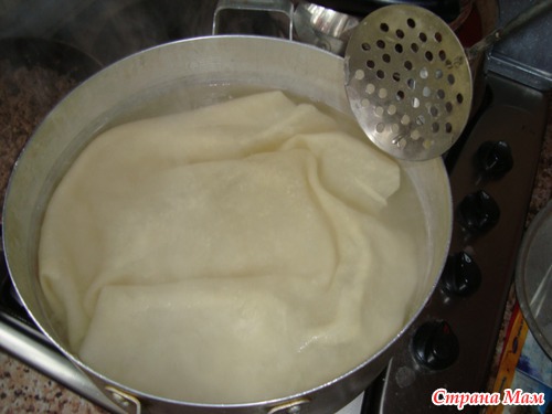 Кипятим воду, чуть солим, опускаем осторожна туда наш лаваш буквально на 10-20секунд