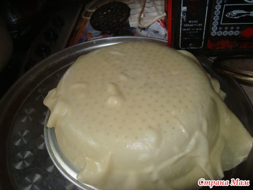 рядом в подносе кладем перевернутый дуршлаг, и кладем на него