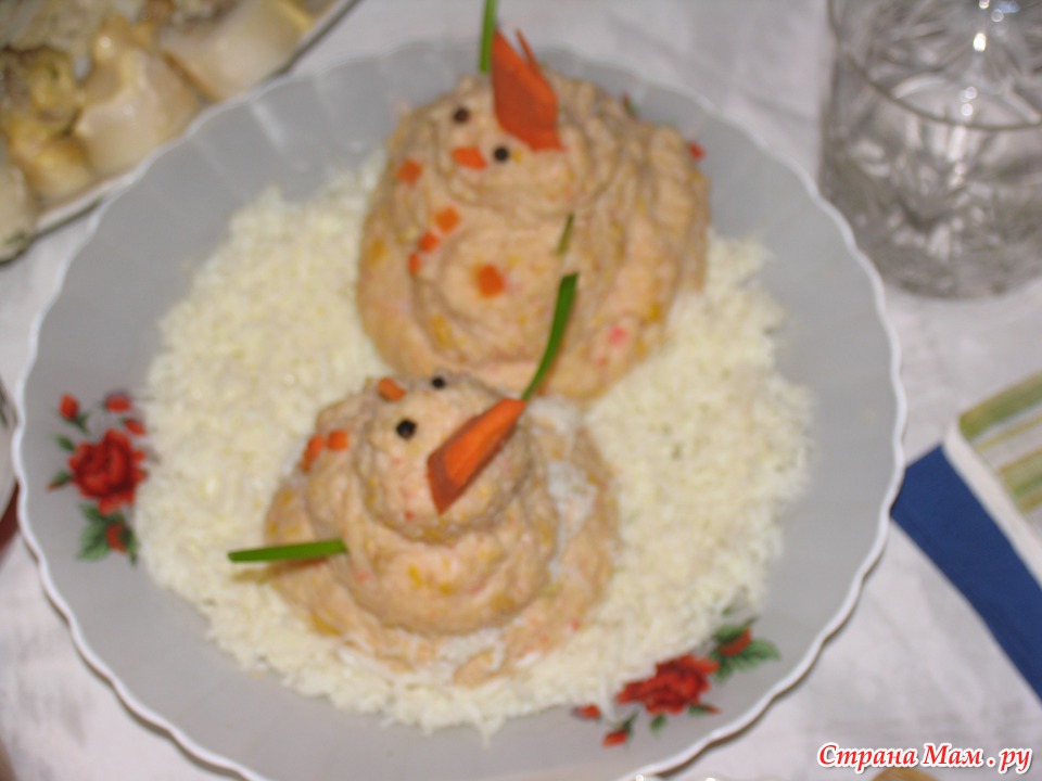 Затем были приготовлены снеговички (салат из крабовых палочек), на мой взгляд не очень удачные получились - расвалились слишком сильно...