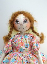 Сшита из бязи, наполнитель синтепух и холлофайбер. Платьице из 100% хлопка для пэчворка, крылышки из органзы.