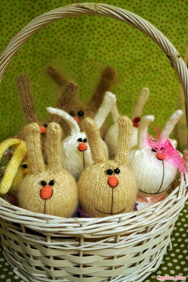 Была у меня мечта, маленькая такая - навязать карзину зайцев! И вот не прошло и месяца, урывками... но я это сделала!) Ничья психика не пострадала, но муж был на грани!