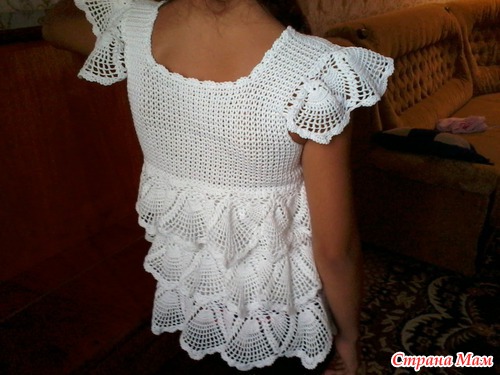 Я думаю, все вязальщицы знают работы Таши Подаковой, мне они очень нравятся, поэтому выбирая какую блузку связать своей школьнице я долго и не думала - взяла одну из ее моделек. только я изменила рукавчик.