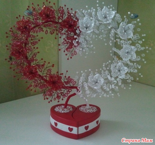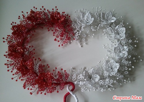 Это сердце из белой и красной рубки я сделала в подарок племяннику на свадьбу.