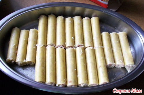 -набить каннеллоне начинкой ( самой разнообразной : здесь фарш, картофель, лук, цуккини и специи )