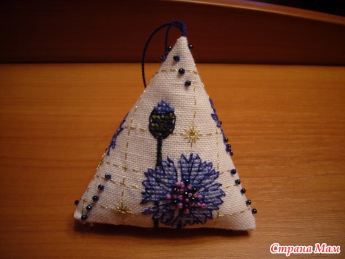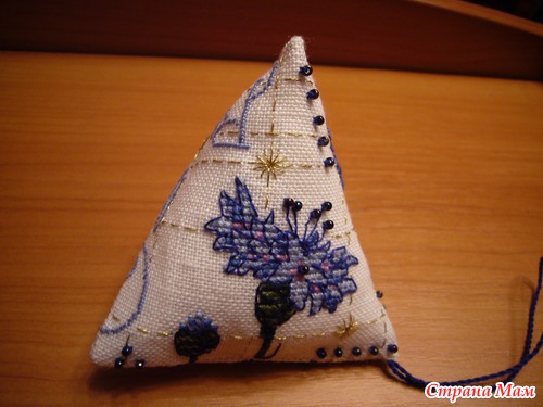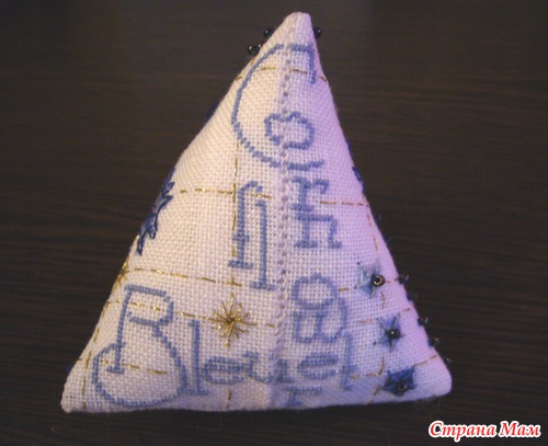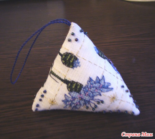 6. Сшив приблизительно 2/3, набейте Вашу пирамидку наполнителем и закончите работу.