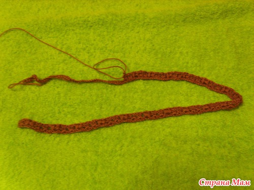 Вязание начинаем с набора цепочки. Лучше эластичной. Длинна 60-70 см. Это окружность, нашей трубы. Можно делать больше, как пожелаете...