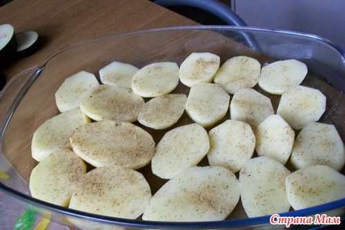 -выкладываем картофель и снова присыпаем сверху солью и специями