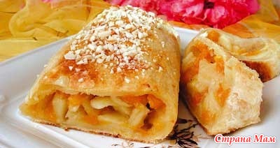 Наиболее распространенными начинками являются: натертые на терке яблоки с сахарным песком, мятой и мелко нарубленным миндалем, масса для творожного пи¬рога, вишни, сливы, мак, орехи или миндаль, тушеные овощи, рубленое мясо или фарш.