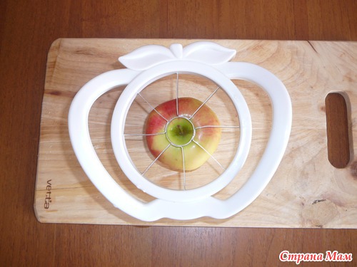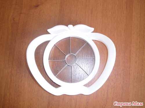 Вот мне интересно... кто бы не приходил к нам в гости, все удивляются видя эту штуку... А назвала я ее яблокорезка(кто знает, может она так и называется). Купил мне ее муж, хоть я и не просила. Просто увидел ее и решил купить. Штука надо сказать очень удобная и нужная. Не люблю я нарезать яблоки, чистить их от сердцевинки и т. д. а тут, раз и все готово. Вот решила и у вас спросить, есть у вас такая штучка? А у кого нет, тот будет знать, что такое чудо существует в природе!