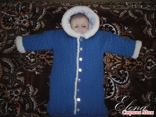 Связала конверт для внука: Пряжа ALIZE LANAGOLD 700 грамм, спицы #3. На капюшоне и манжетах KARTOPU bebe anakuzusu. Внутри подкладка из простёганого синтепона К нему связались пинеточки, чепчики и варежки из тех же ниток. Читать полностью