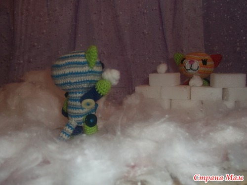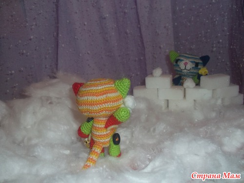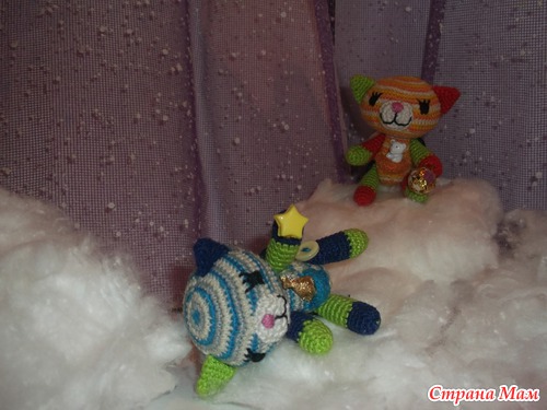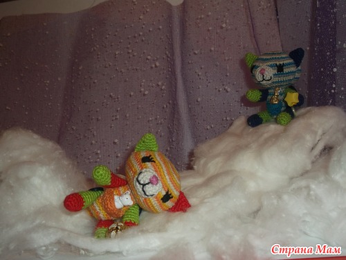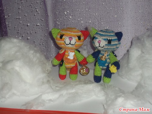 Она их месяц вязала и собирала. Я только с креплением ручек помогла - очень уж хотелось Капустке, чтобы они были подвижными