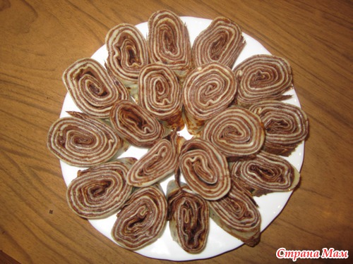 )Делим его на пополам и во вторую половину добавляем какао несколько ложек (в зависимости от количества теста) и выпекаем блинчики шоколадные и простые беленькие