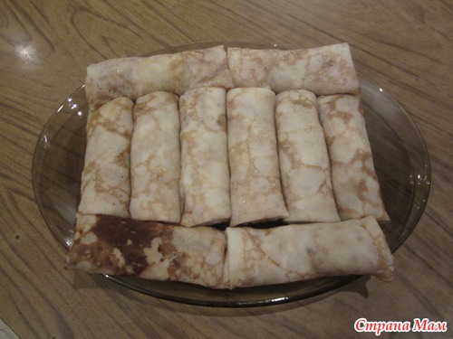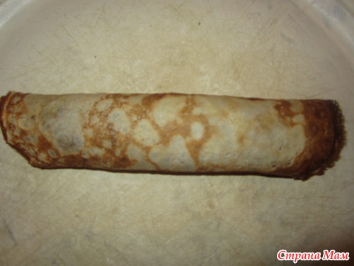 Затем складываем друг на друга несколько блинов в зависимости от того какой величины рулет вам нужен