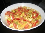 Нарезаем помидор не тоненькими полукольцами.