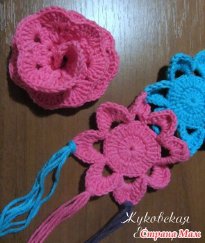 Отдельно навязала розочки по схеме( у меня на 33 петли)