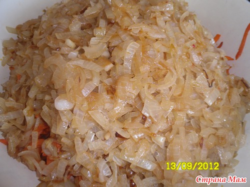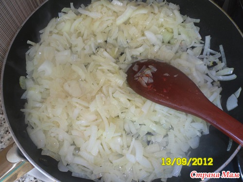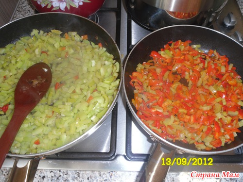 Вылила в большую кастрюлю и туда же жаренные овощи.