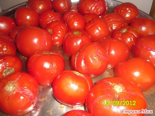 Помидоры вымыла и положила в духовку чтоб размякли и кожицу легче было снять.