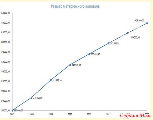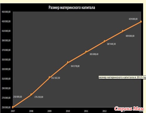 C 1 января 2013 года размер средств государственной поддержки семей должен быть равен 409 000 рублей. То есть сумма материнского капитала в 2013 года должна увеличиться более чем на 21 тысячу рублей.