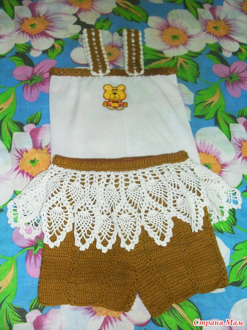 Тэги: крючком, вязание для детей, девочкам, комплект крючком, комбинированное вязание, топ крючком, шорты крючком