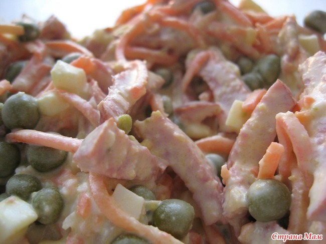 Попробуйте такой салатик, у нас он моментально съелся.0,5 палки копченой колбасы
