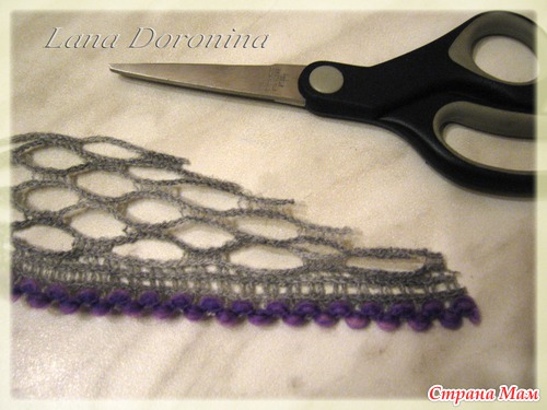 И точно также можно закончить шарфик. Обрезать по краям ячеек лишнее (заузить ленту) и закрыть петли через эти ячейки. Получается закругленный красивый краешек!