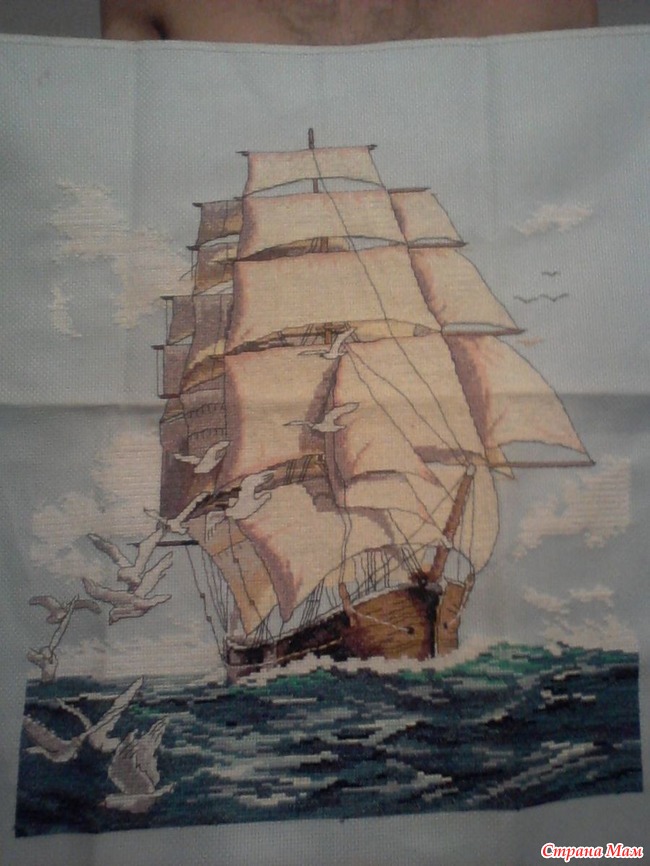 Покупала этот набор еще весной 2011 года. За лето вышила почти весь парусник, застряла на море - наделала кучу ошибок и в итоге запуталась где что шить!