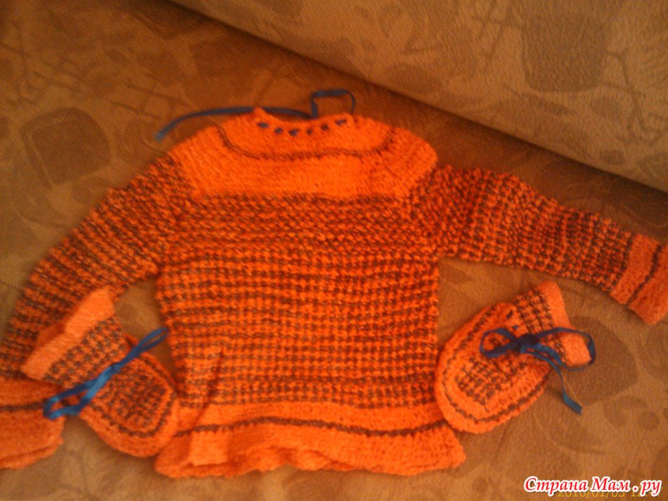 2 комбеза и кофта с пинетками, сейчас вяжу штанишки