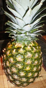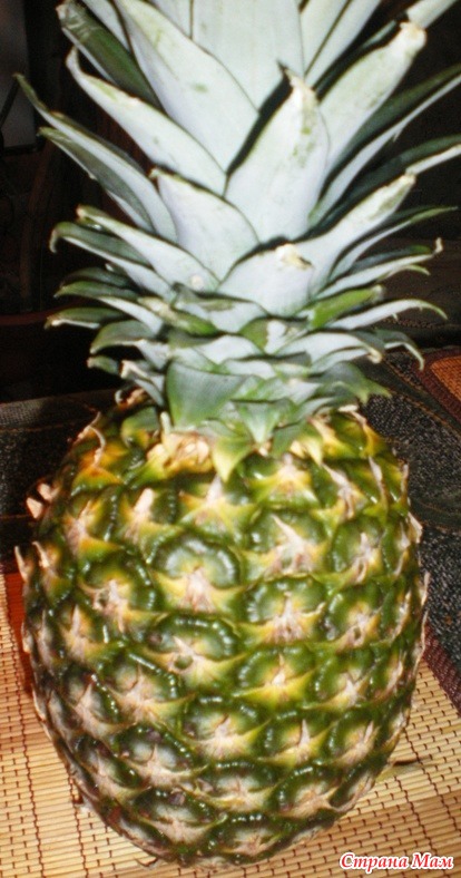 Помню , как моя мама выиграла ананас в конкурсе газеты " Новое время". Все было здорово, пока ...мои родители не столкнулись с необходимостью разделать ананас.Надо сказать, что люди они хоть и образованные , но с ананасами не очень дружили и вообще сторонники минимализма в еде и быту ( что мне очень-очень не нравилось ) . И не могло нравиться никак , ибо я по сущности своей творческой натуры - гурман .Но вернемся к ананасу. Как же его правильно разделать? Первое : при выборе ананаса следует проверить легко ли он виляет хвостом .(Молодец , спелый) .Однажды перед Новым Годом я час помогал людям выбирать спелые ананасы. И вот он на разделочной доске . Смело отрезайте зеленую часть вместе с кружочком ананаса , примерно как хвостик арбуза вместе с "крышкой".Далее -долой кожуру(ну , свеклу чистили все или картофель) Если у Вас есть твердая выемка или железная трубочка для приготовления колбас , то оставляем дырку для ананасовых бубликов . Приятного аппетита . Кто смотрел "Ананасовый экспресс" поймет , что жизнь коротка , быстрее вонзайте зубки в сочный ананас . Только , умоляю , не жадничайте! Ананас не следует кушать в большом количестве , раздражает ротовую полость , Алекс вообще ходил с раной под нижней губой , напоминающую герпес и больше месяца смотреть на ананас не мог . Мое личное мнение: Я не думаю , что ананас способствует сильно похудению . Верю охотно , что какой-то определенный сорт ананаса помогает избавиться от лишних кг ,но далеко не все сорта так героичны У кого рецепты блюд из ананаса , поделитесь !Поскольку мы предпочитаем морепродукты то , состав салата "Океан ностальгии" , который я придумал , когда в морозильнике уже размножились креветки , мидии и прочее , таков : креветки , мидии ,кальмары,крабовые палочки - всех по сто грамм или какие есть (400грамм) , 300 грамм ананаса , сельдерей 100 грамм , оливковое масло, базилик , остальные приправы и соль-перец по вкусу!