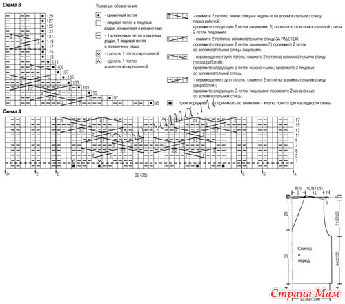 Основной узор по схеме А: в лицевых кругах вяжите следуя схеме; в изн. рядах вяжите петли как смотрятся. Вяжите 1-2 ряды однажды, затем повторяйте 3-18 ряды повсюду.