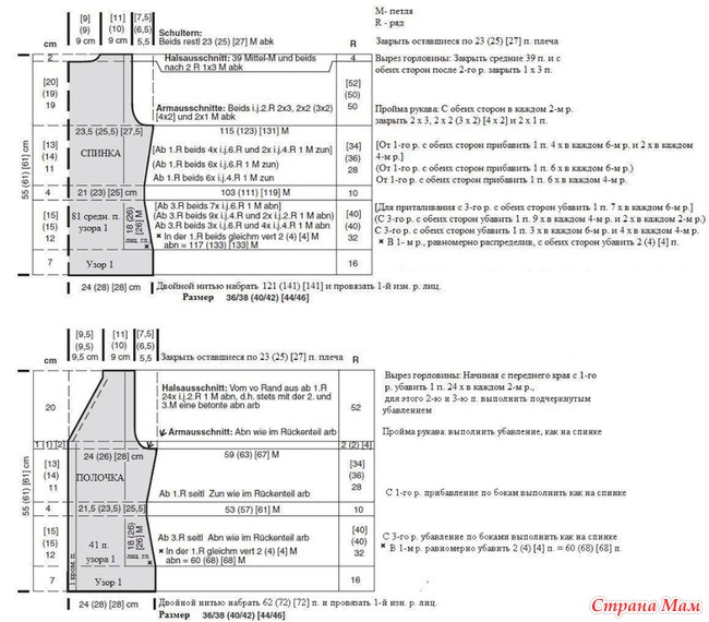 На спинке и полочке: узор 1 согласно схеме и лиц. гладь.
