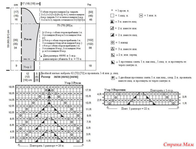 Рукав: узор 2 согласно схеме и лиц. гладь.