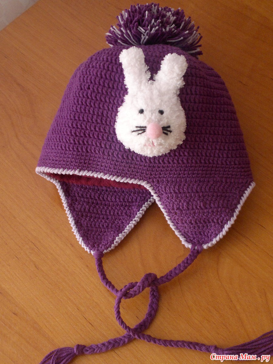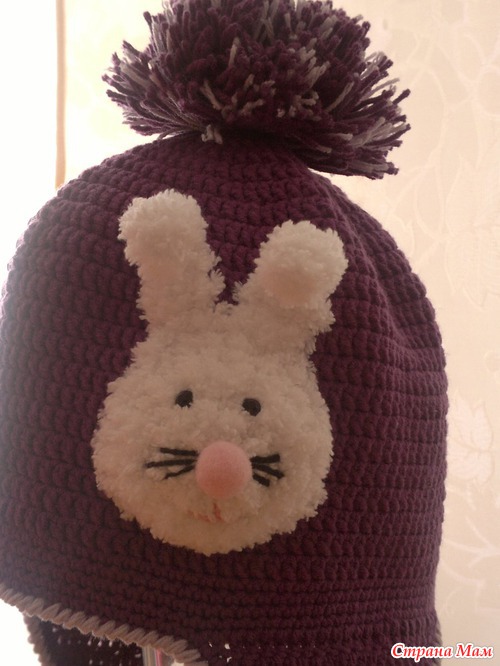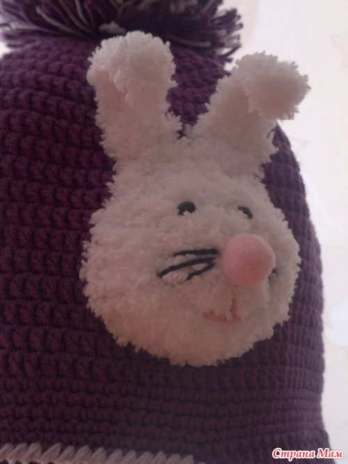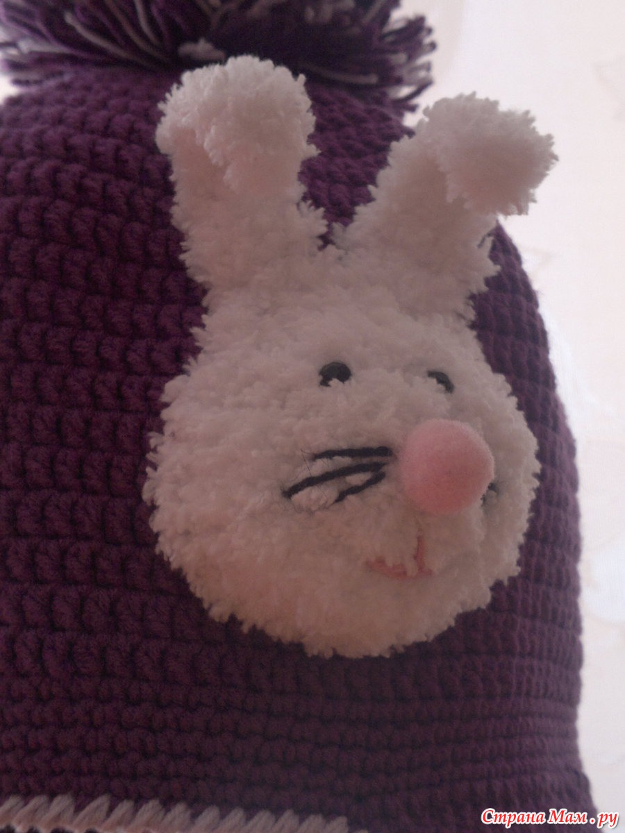Шапочка с зайцем на флисовом подкладе в моём исполнении, а автор идеи Ирина Фадеева. Зайка связан из ПУФА