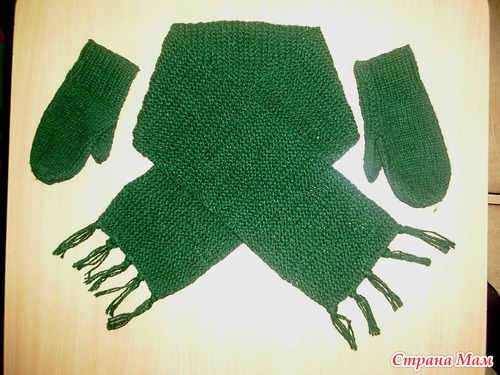 Варежки и шарф для сына. Наипростейший вариант.