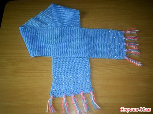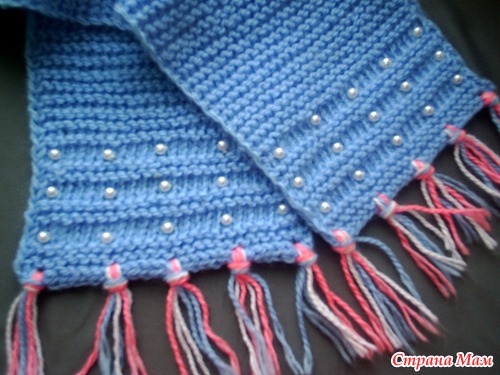 Шарфик для дочи. Обычная платочная вязка плюс бусины на концах