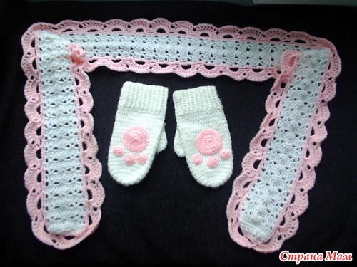 Шарфик и варежки для дочки крючком