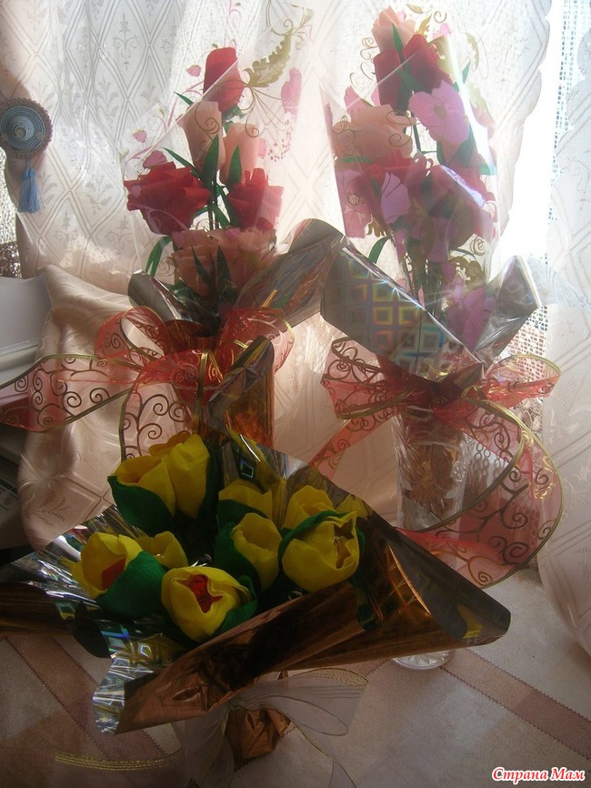 Сегодня подарили наши букеты воспитательницам и нане. Надеемся им пришлись по душе наши цветочки
