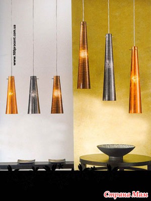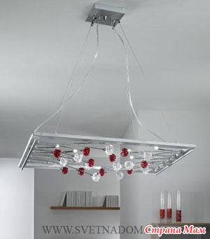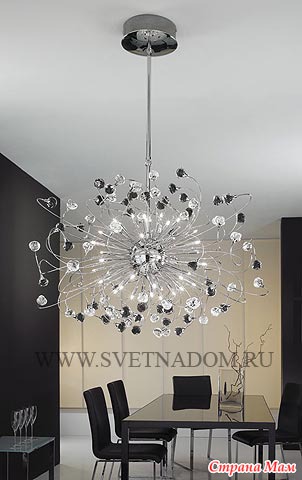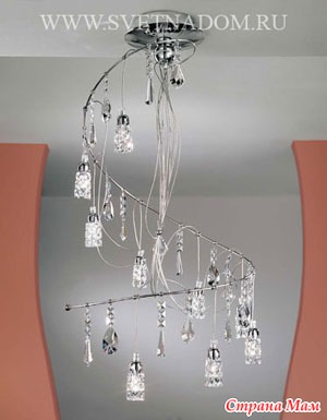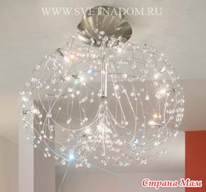 (подвески в виде палочек и хрустальных бусин). Люстры популярны и сегодня. При этом выбор люстр широчайший: можно заказать люстру из золота и богемского хрусталя, можно из муранского цветного стекла – лишь бы позволял кошелек и общий стиль вашего дома. Однако при всенародной любви к люстрам, существовавшей в СССР и сохранившейся до сих пор, необходимо подчеркнуть, что люстра, особенно массивная, подходит далеко не ко всякому интерьеру и противопоказана для маленьких низких помещений. Люстра подразумевает интерьер в стиле барокко, модерна или классики (если это люстра из хрусталя или каких-то других ценных материалов).