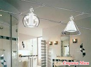 низкие потолки будут казаться более высокими, если к ним прикрепить светильник с рассеивающим действием. При этом отраженный от потолка свет будет равномерно распределяться по помещению, расширяя его. Такой вариант незаменим для прихожих, ванных комнат, туалетов.