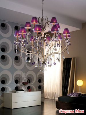 (подвески в виде палочек и хрустальных бусин). Люстры популярны и сегодня. При этом выбор люстр широчайший: можно заказать люстру из золота и богемского хрусталя, можно из муранского цветного стекла – лишь бы позволял кошелек и общий стиль вашего дома. Однако при всенародной любви к люстрам, существовавшей в СССР и сохранившейся до сих пор, необходимо подчеркнуть, что люстра, особенно массивная, подходит далеко не ко всякому интерьеру и противопоказана для маленьких низких помещений. Люстра подразумевает интерьер в стиле барокко, модерна или классики (если это люстра из хрусталя или каких-то других ценных материалов).
