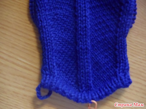 Начинаем вязать с верхнего клина. Расчет ширины клина: Измеряем расстояние от кончиков бровей ребенка, умножаем на количество петель в 1 см. плюс 2 кромочные. Количество петель должно быть не четным.