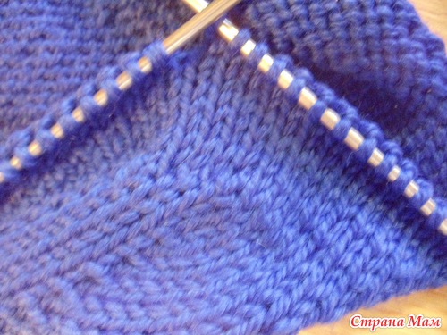 Как только нужная длина достигнута (серединки) начинаем вязать скосы га макушке путем "незаконченных рядов".
