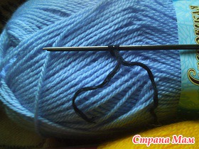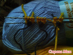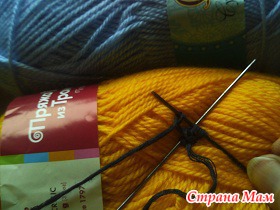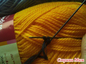 1ряд: Набрала на спицы 2 петли пряжи чёрного цвета.