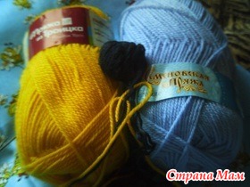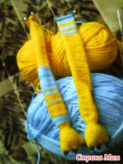 Дальше вязала произвольную длину лапки, с произвольными полосочками голубого цвета