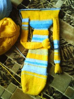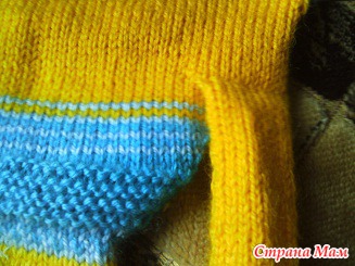 Привязала лапки (приложила и провязала вместе лицевыми петли лапки с петлями шарфа)