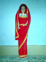 Здравствуйте, примите новенькую. Связала для дочкиной куклы индийское сари (с сайта kimberly-club.ru). Чуть позже размещу платье "Представление ко двору" и "Свадебное платье 1905 года".