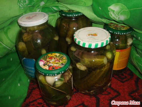 сразу как в второй раз вылила кипяток с таза с огурцов. огурцы собираю в эти банки и наливаем с чайника кипяток на них. крышки плотно закроем. можно обвести скотчем и под одеяло их. в одеяле они у меня остывали 2 дня.