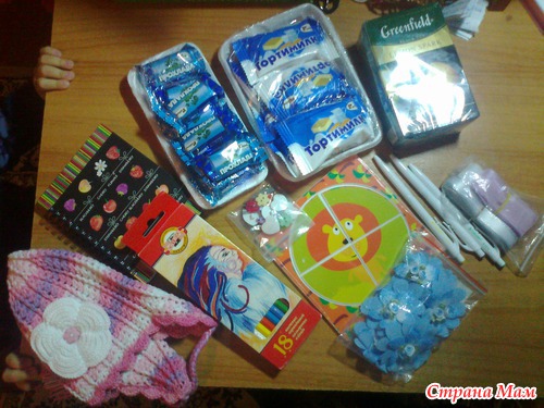 желаю вам приятного чаепития! желаю , чтобы Олечка писала этими ручками школьные контрольные только на пятерки! желаю, чтобы Юлечка и Олечка этими карандашиками нарисовали много чудесных красивых картинок!!!!!!!!!!!!!!!!!!!!!!! желаю, чтобы все мелочи для рукоделия не залеживались в закромах у тебя, а быстро нашли себе применение!!!!!!!!!!!!!!!!!