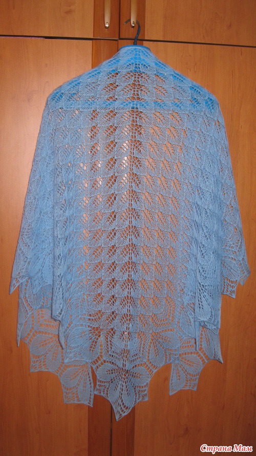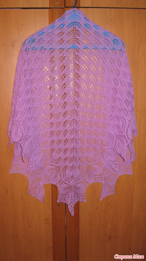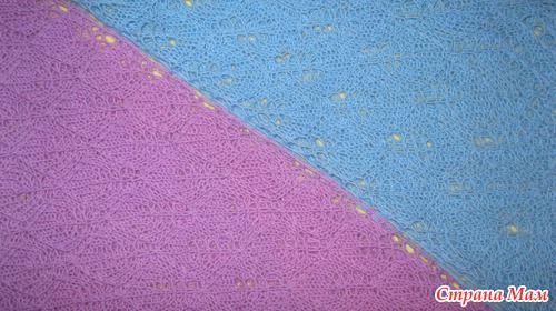 Правда после блокировки шали немного отличаются по размеру (наверное голубую больше растянула). Вот здесь можно посмотреть подробное объяснение по вязанию ленточки (начало треугольной шали). http://mizrah.ru/post224481680/?upd